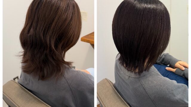 縮毛矯正をかけられている髪でしたので、髪に栄養分を補給しながら、カラーエステをさせていただきました。